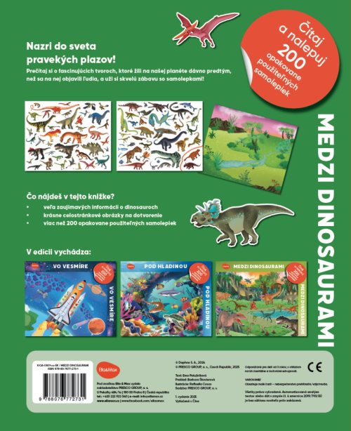 Užijte si spoustu zábavy s úžasnými adhezivními samolepkami, díky nimž stvoříte svůj vlastní pravěký svět! V téhle knížce jich objevíte více než dvě stovky a můžete s jejich pomocí donekonečna dotvářet překrásné celostránkové obrázky, k nimž samolepky jednoduše přilnou. Vedle toho tu najdete také poutavý text plný zajímavých informací o dinosaurech. Zavítáte do světa pravěkých plazů – fascinujících tvorů, kteří obývali naši planetu dávno předtím, než se na ní objevili lidé.