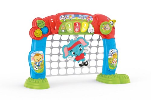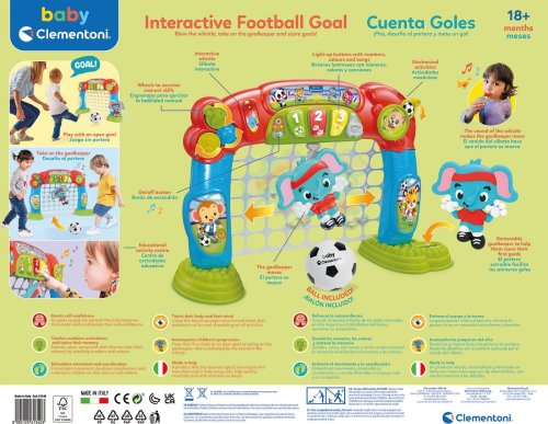 Interaktivní fotbalová branka rozeznává a oslavuje vstřelené góly zvukovými efekty a hudbou. Branka má brankáře - slona, který se po zaznění píšťalky pohybuje vpravo a vlevo.