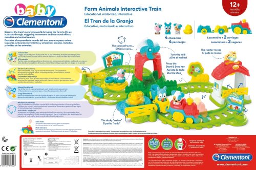 Interaktivní sada vláčku BABY CLEMENTONI se čtyřmi figurkami zvířátek vybízí děti k prozkoumávání života na farmě. Objevujte s dětmi prvky, které se pohybují, otáčí a otevírají.