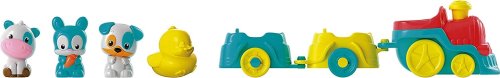 Elektrická lokomotiva se dvěma vagonky je vybavena tlačítkem pro spuštění , zastavení pohybu. Vláček rozezná jednotlivé úseky na trati - spustí realistické zvukové efekty, zvuky zvířátek a melodie Pohyblivé prvky jako je otáčející se mlýnek, otevírající se brány nebo otočné prvky podněcují zájem a podporují nejen představivost, ale i pochopení příčiny a následku. Zvířátka (pejsek, králík, kravička a kačenka) mohou jet na výlet vláčkem, jezdit na kolotoči nebo "plavat" v rybníčku. Velké množství různorodých aktivit stimuluje zručnost a rozvíjí představivost dítěte. Pro aktivaci tichého provozu zapněte mašinku a podržte tlačítko (komín) po dobu 10 vteřin.