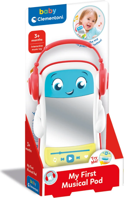 Můj první hudební přehrávač se světly a zrcátkem, který stimuluje dítě prostřednictvím napodobovací hry. Díky hudbě a zvukům stimuluje hračka sluchové vnímání dítěte. S My First Musical Pod si dítě může zábavnou formou procvičit manipulaci s předměty. Hra zapojuje dítě tím, že napodobuje hudební přehrávač maminky a tatínka. Obsahuje 12 různých melodií, pomocí kterých mohou děti objevit různé hudební žánry.