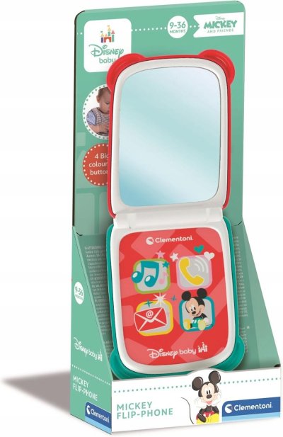 Roztomilý Clementoni Mickey Flip Phone , skládací dětský “smartphone” s motivem Mickeyho, ideální pro napodobování telefonování a videohovor.