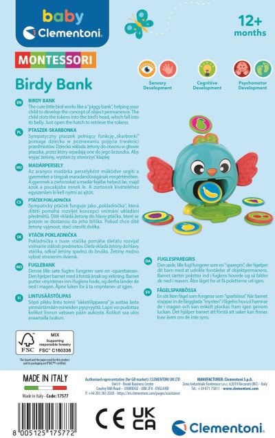 Hravá kasička ve tvaru ptáčka od renomované značky Clementoni je ideální způsob, jak děti naučit hospodařit s penězi a zároveň si užít zábavu.