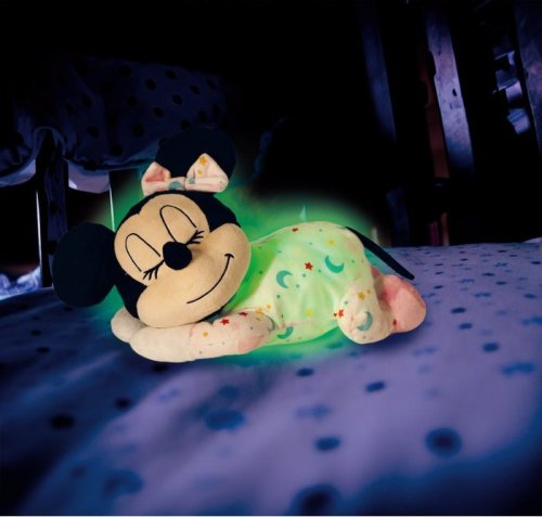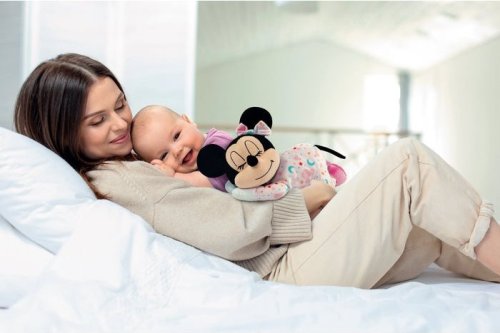 Měkoučká plyšová Minnie pomáhá uklidnit a uvolnit dítě díky chromoterapii a jemným melodiím.