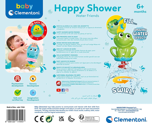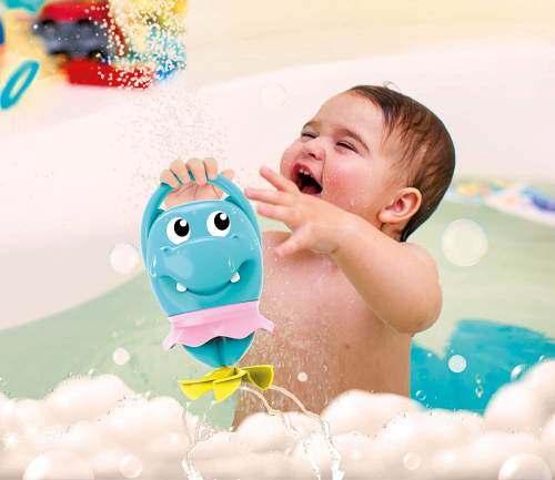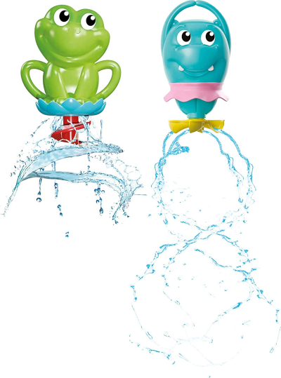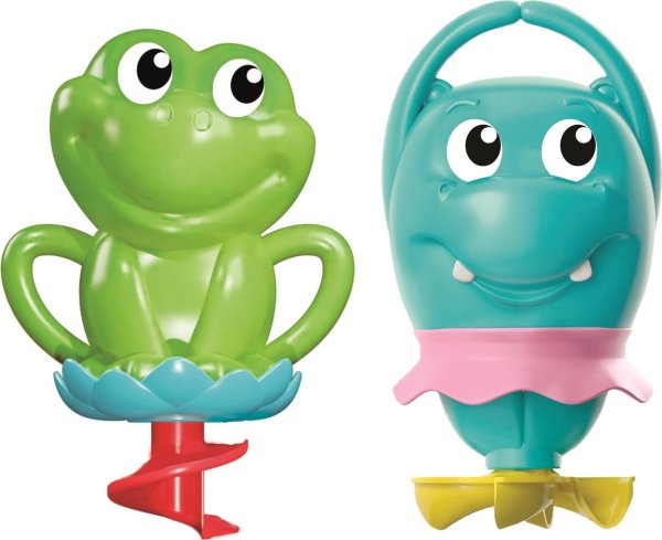 Roztomilá dvojice hraček do vany, která promění koupání ve spoustu zábavy. Jakmile se obě zvířátka naplní vodou, jako by to byly prázdné poháry, vytvoří se díky odtokovému otvoru u základny postaviček různé šplouchající efekty podobné fontáně, které děti ohromí.