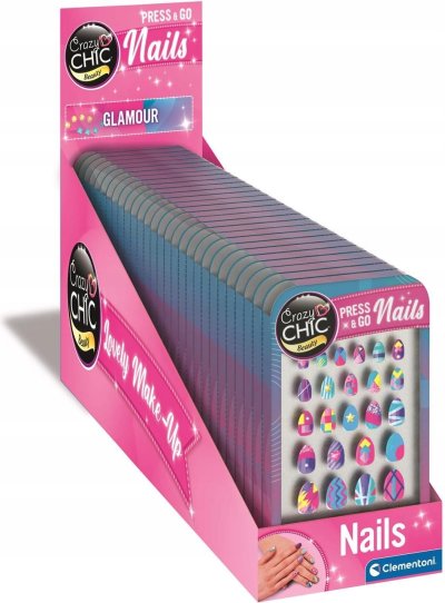 Sada obsahuje 24 nalepovacích umělých nehtů v různých tvarech, velikostech a třpytivém glamour designu – aplikace je snadná, rychlá a bez lepidla. Jednoduché, čisté použití: nehty stačí jen přitlačit, jsou netoxické a hypoalergenní, snadno se odstraní. Výrobek podporuje rozvoj jemné motoriky, fantazie a osobní styl – ideální pro kreativní hru v oblasti krásy