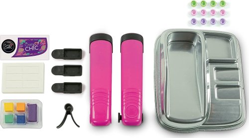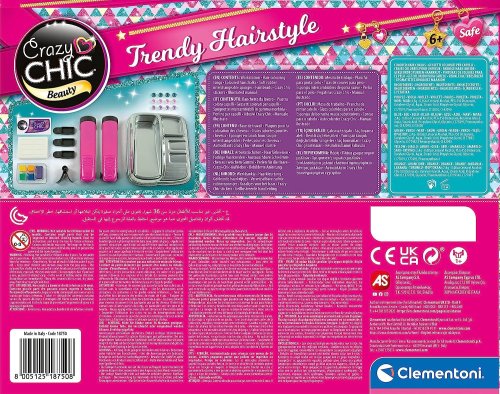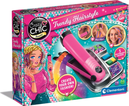 Umění kadeřníka máte na dosah ruky díky inovativní žehličce na barvení vlasů - ideální pro módní a aktuální trendy! Holčičky si budou moci vytvořit krásné barevné odstíny a duhové lokny: stačí vložit tablety s barevným práškem do speciálních přihrádek žehličky a přenést barvu do vlasů! Balení obsahuje: barevné křídy na vlasy s aplikátorem ve tvaru žehličky na vlasy, korálky do vlasů, měkké gumové vyměnitelné houbičky, nálepky, obrázkový návod. Upozornění: Barevné provedení výrobku se může lišit, obrázky mají ilustrativní charakter.