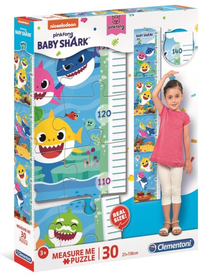 Velký dětský růstový metr s motivem populární žraločí rodinky s měřidlem od 27 do 143 cm. V balení je přibaleno lepidlo pro slepení. Díky velkým dílkům se bude metr dětem dobře skládat a užijí si spoustu zábavy! Tloušťka 3 mm. Vhodné pro děti od 3 let. Rozměr složeného puzzle cca 21 x 118 cm