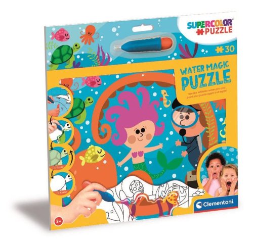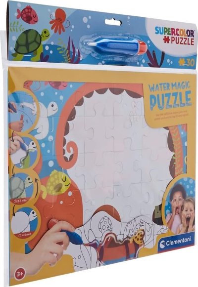 Kouzelné dětské puzzle, které se maluje vodou tolikrát, kolikrát chcete? To je Water Magic - kouzlo vody ! Poskládejte puzzle a pak se bavte vybarvováním vodním perem. Obrázek ožije mnoha barvami a pak jako mávnutím kouzelného proutku zase zmizí (po 4-5 minutách). Puzzle Water Magic od Clementoni překvapí děti každým tahem pera na vodu - hra, která nikdy nekončí! Vymyšleno, navrženo a vyvinuto v Itálii. Rozměr složeného puzzle cca 38 x 30 cm