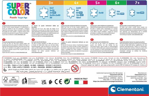 Dvě dětská puzzle se stejným počtem dílků a stejným rozměrem. Puzzle SuperColor Collection - edice navržená speciálně pro děti, pomáhá jim rozvíjet manuální zručnost a schopnost pozorování. Kvalita materiálů a exkluzivní technika tisku zaručují trvale krásné, živé a zářivé barvy. Rozměr složeného puzzle cca 27 x 19 cm