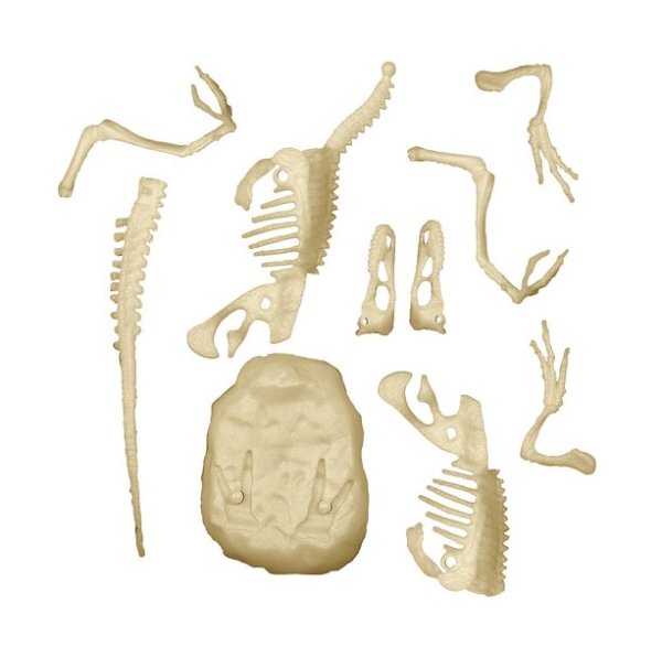 Velociraptor, legendární prehistorické stvoření ožívá, díky této skvělé sadě pro malé paleontology. Kladivo a dláto slouží k rozbití kamene ve kterém se skrývá neuvěřitelná kostra dinosaura. Kostra Velociraptora svítí ve tmě! Rozměr balení: 25,2 x 21 x 6,5 cm. Věk: 7+