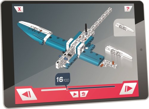 Upozornění: Součástí balení je ilustrovaný návod pro tři hlavní modely. Návody pro ostatní modely jsou k dispozici v elektronické podobě v aplikaci. Kromě ilustrovaného návodu je k dispozici aplikace s 20 různými modely, které může dítě prozkoumat, a navíc interaktivní 3D návod vysvětlující jednotlivé fáze sestavování jednoduchým a zábavným způsobem. Návody si můžete si můžete stáhnout v elektronické verzi v aplikaci (App Store, Google Play) pomocí QR kódu na obalu výrobku.