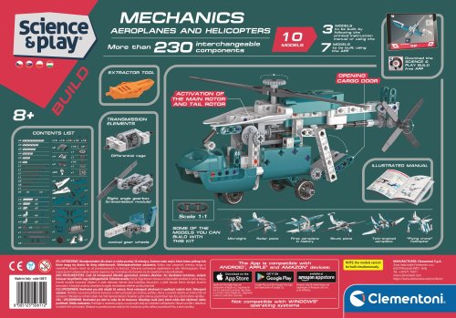 Sestav úžasná letadla nebo vrtulníky z kolekce CLEMENTONI Science+amp;Play Mechanická laboratoř .