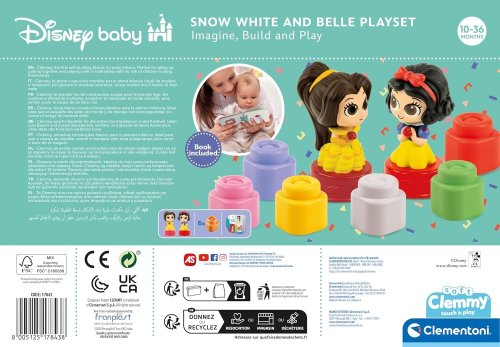 Balení obsahuje: 6 měkkých kostek Clemmy, 2 kostky s postavičkami princezen, ilustrovanou knížku. UPOZORNĚNÍ: Měkké kostky lze používat i při hraní ve vodě, lze mýt neutrálním mýdlem při nízkých teplotách, max 30°C. Značka BABY CLEMENTONI je synonymem kreativity, nadšení a důrazu na kvalitu. Hračky pomáhají rodičům při komunikaci s dítětem. Vzhled hračky a její inovativní barvy, netoxické a pevné materiály, vytvarovaný povrch a různé funkce pomáhají při rozvoji hmatových a sluchových schopností, napomáhají pohybové aktivitě a vyvolávají první logické asociace. Z výrobků firmy jsou na českém trhu oblíbené zejména CLEMMY kostky, které jsou vyrobeny z měkké netoxické gumy. Ta je zároveň snadno omyvatelná a má lehkou vanilkovou vůni.