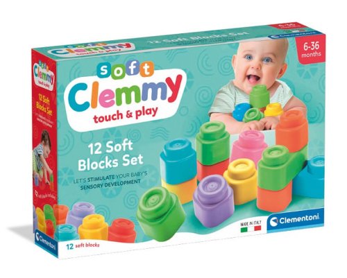 Bezpečné hraní s měkkými barevnými kostkami pro děti již od 6 měsíců! Díky CLEMMY kostkám může dítě stavět své první komíny a stavby. Hra s kostkami rozvíjí senzorické vnímání, manuální zručnost a prostorové vnímání. Hra se stavebními kostkami podněcuje fantazii a děti se zabaví na dlouhé hodiny. Balení obsahuje: 12 měkkých barevných kostek. POZNÁMKA: Kostky lze používat i při hraní ve vodě, dají se mýt v myčce. Značka BABY CLEMENTONI je synonymem kreativity, nadšení a důrazu na kvalitu. Hračky pomáhají rodičům při komunikaci s dítětem. Vzhled hračky a její inovativní barvy, netoxické a pevné materiály, vytvarovaný povrch a různé funkce pomáhají při rozvoji hmatových a sluchových schopností, napomáhají pohybové aktivitě a vyvolávají první logické asociace. Z výrobků firmy jsou na českém trhu oblíbené zejména CLEMMY kostky, které jsou vyrobeny z měkké netoxické gumy. Ta je zároveň snadno omyvatelná a má lehkou vanilkovou vůni.