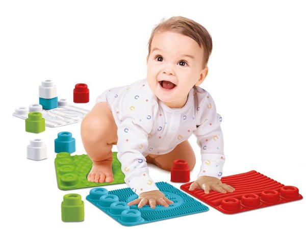 Soft Clemmy baby – senzorické podložky s kostkami jsou vyrobeny z měkké gumy. Vyrobeno z testovaného a nezávadného materiálu. Každá podložka má jinou reliéfní texturu, která stimuluje hmatové vnímání dítěte. Podložky též slouží jako základny pro stavění věží z barevných kostek. Hračka stimuluje hmatové vnímání, pozorovací schopnosti a manuální dovednost. Podložky i kostky jsou omyvatelné v myčce. Obsahuje: 8 podložek, 8 kostek. Rozměry balení: 28,5 x 38,5 x 7,8 cm. Doporučený věk: 6-36 měsíců.