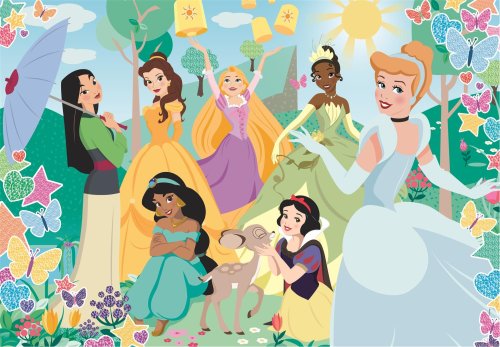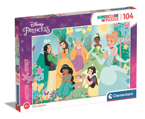 CLEMENTONI Třpytivé puzzle Disney princezny v zahradě 104 dílků