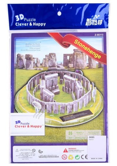Postavte si vlastní 3D model slavného Stonehenge! Stonehenge je jedno z nejznámějších kultovních míst v Anglii. Sada se skládá z 35 dílků a obrázkové předlohy. Při sestavování procvičíte manuální dovednosti a přesnost.Ke složení nepotřebujete nůžky ani lepidlo . Rozměr složeného modelu: cca 18,2 x 18,2 x 4,2 cm. Rozměr složeného puzzle cca 18,2 x 18,2 x 4,2 cm