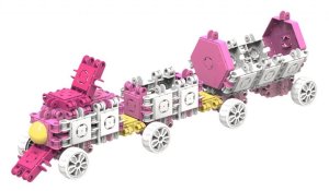Pastelově růžová sada Clicfformers Blossom obsahuje 150 dílků vč. funkčních doplňků a bílých koleček. Vzhledem ke 4 různým principům spojování dílků lze popustit uzdu fantazii již téměř bez omezení. Stavět můžete prakticky cokoliv včetně velkých zvířat, zdobných kočárů, nábytku, klenotů, domečků apod. Série Blossom je charakteristická hravými světlými barvami s převládající bílou, růžovou a světle zelenou. Výsledné stavby lze díky odolnosti dílků a spojů využívat i jako funkční hračky. Obsahuje brožurku s návody a inspiracemi, které jsou však jen nepatrným zlomkem reálných konstrukčních možností. Vzhledem k vyššímu počtu dílků doporučujeme i pro rodiny s více dětmi. Vhodné pro malé stavitele od 4 let.