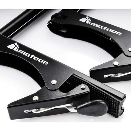 Praktická sada držáků i se síťkou Meteor Clip je vhodná pra začínající a rekreační hráče. Ocelové držáky nabízí díky své konstrukci jednoduché a rychlé upínání ke klasickým stolům na stolní tenis. Plastová síťka vydrží i ostřejší smeče. Rozměry držáků jsou 26 x 23 x 5 cm a síťky 176 x 15 cm.