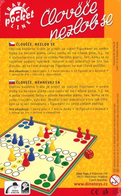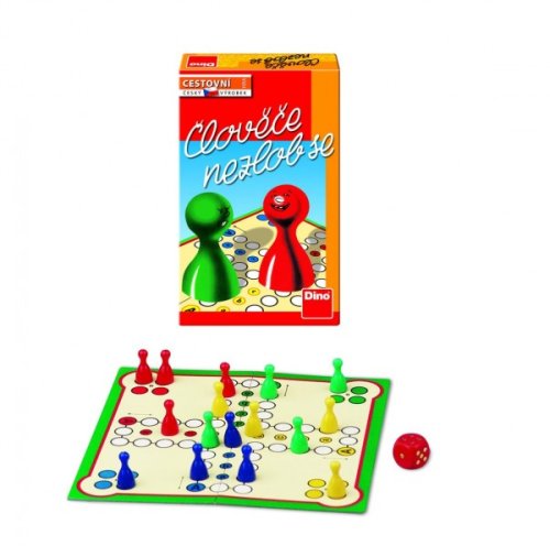 Hra Člověče nezlob se pro 2 - 4 hráče vhodná od 6 let. Balení obsahuje 1 herní plán, 16 figurek ve 4 barvách, 1 hrací kostku s obrázky, 1 pravidla.