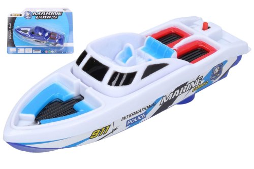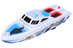 Člun. Rozměry 22,5x6,5x7 cm. Pohon na baterie. 2xAA baterie nejsou součástí. 2 barevné varianty: modrá, bílá.