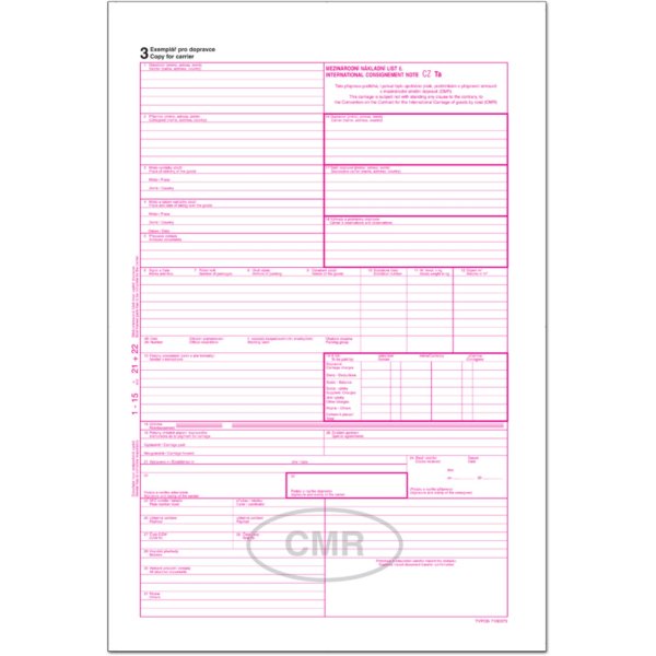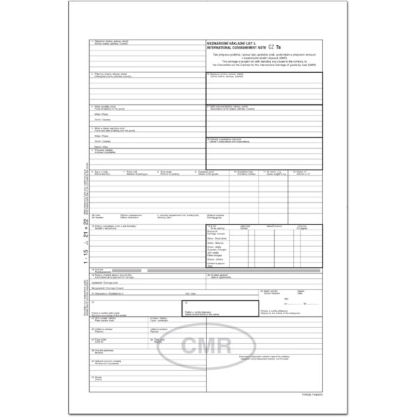 A4, samopropisovací, číslovaný Jednotlivé listy jsou na horní straně slepeny Snadné odtrhávání 100 složek po 5 listech Česko-anglická verze Tiskopisy na samopropisovacím papíře jsou určeny buď pro ruční …