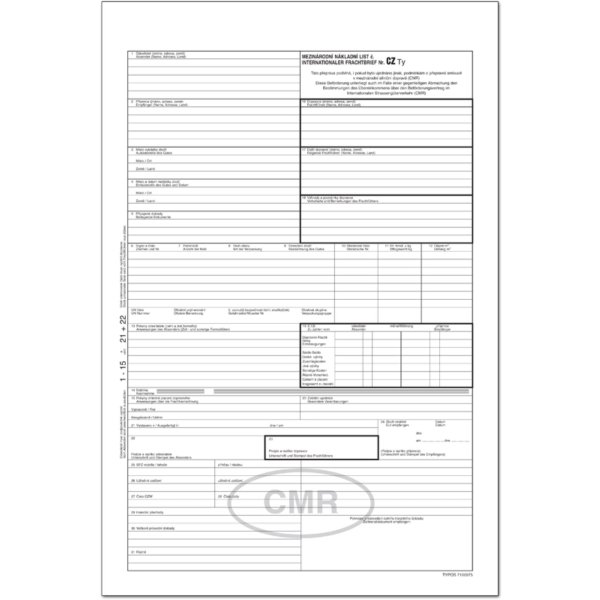 CMR, mezinárodní nákladní list, ČJ/NJ