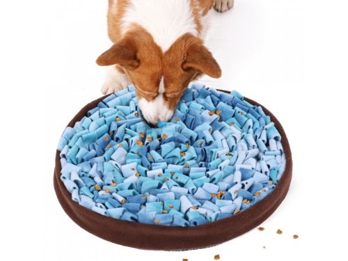 Tento čmuchací kobereček je navíc opatřen protiskluzovou ochranou, díky které se nesune po podlaze. Skvělou vychytávkou je i to, že je čmuchací kobereček ohraničen, takže pamlsky nevypadnou mimo čmuchací prostor. Kobereček má nejen klasické třásně, ale také spoustu dalších úkrytů, do kterých můžete oblíbené pamlsky/granulky ukrýt. Tento psí hlavolam má průměr 42 cm, takže se hodí pro malé i velké pejsky.