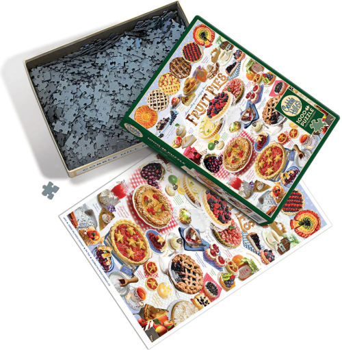 Raznice puzzle COBBLE HILL nekopíruje standardní mřížku, rohy a hrany dílků nejsou vždy v jedné ose a dílky mají neobvyklý tvar. Obtížnost puzzle je tak vyšší než u klasické mřížkové raznice, kterou používají přední výrobci v Evropě. Součástí balení je i předloha o velikosti 31,6 x 22,9 cm. Rozměr složeného puzzle cca 48,9 x 67,6 cm