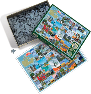 Raznice puzzle COBBLE HILL nekopíruje standardní mřížku, rohy a hrany dílků nejsou vždy v jedné ose a dílky mají neobvyklý tvar. Obtížnost puzzle je tak vyšší než u klasické mřížkové raznice, kterou používají přední výrobci v Evropě. Součástí balení je i předloha o velikosti 31,6 x 22,9 cm. Rozměr složeného puzzle cca 67,6 x 48,9 cm