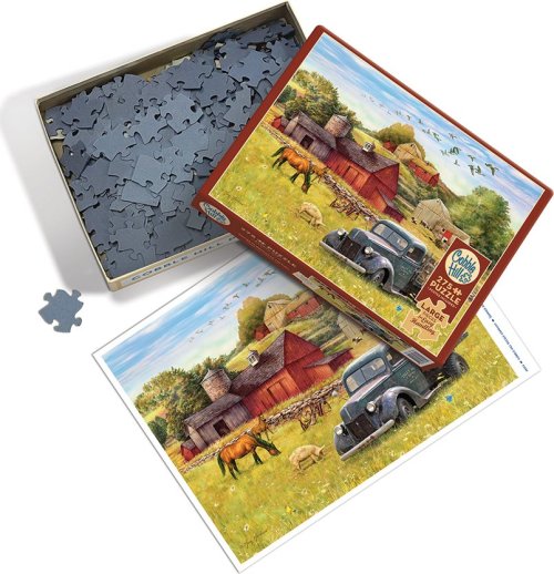 Puzzle s extra velkými dílky! Kolekce Easy Handling od výrobce COBBLE HILL je výborným řešením pro milovníky puzzle, kteří mají problémy se zrakem, pro starší věkové skupiny a děti. Dílky s průměrnou velikostí okolo 3 cm usnadňují manipulaci a slouží k procvičování motorických dovedností. Raznice puzzle COBBLE HILL nekopíruje standardní mřížku, rohy a hrany dílků nejsou vždy v jedné ose a dílky mají neobvyklý tvar. Obtížnost puzzle je tak vyšší než u klasické mřížkové raznice, kterou používají přední výrobci v Evropě. Součástí balení je i předloha o velikosti 31,6 x 22,9 cm. Rozměr složeného puzzle cca 67,7 x 48,9 cm