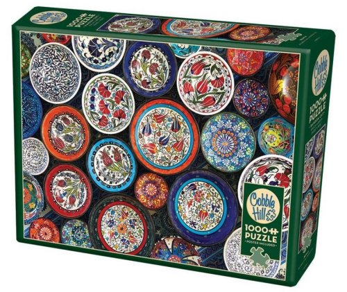 Raznice puzzle COBBLE HILL nekopíruje standardní mřížku, rohy a hrany dílků nejsou vždy v jedné ose a dílky mají neobvyklý tvar. Obtížnost puzzle je tak vyšší než u klasické mřížkové raznice, kterou používají přední výrobci v Evropě. V balení je předloha o velikosti 31,6 x 22,9 cm. Rozměr složeného puzzle cca 67,6 x 48,9 cm