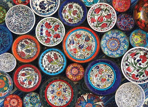 Raznice puzzle COBBLE HILL nekopíruje standardní mřížku, rohy a hrany dílků nejsou vždy v jedné ose a dílky mají neobvyklý tvar.