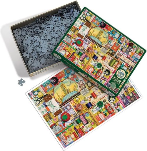 Raznice puzzle COBBLE HILL nekopíruje standardní mřížku, rohy a hrany dílků nejsou vždy v jedné ose a dílky mají neobvyklý tvar. Obtížnost puzzle je tak vyšší než u klasické mřížkové raznice, kterou používají přední výrobci v Evropě. Součástí balení je i předloha o velikosti 31,6 x 22,9 cm. Rozměr složeného puzzle cca 67,6 x 48,9 cm