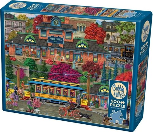 Raznice puzzle COBBLE HILL nekopíruje standardní mřížku, rohy a hrany dílků nejsou vždy v jedné ose a dílky mají neobvyklý tvar. Obtížnost puzzle je tak vyšší než u klasické mřížkové raznice, kterou používají přední výrobci v Evropě. Součástí balení je i předloha o velikosti 30,5 x 22,9 cm. Rozměr složeného puzzle cca 67,6 x 48,9 cm