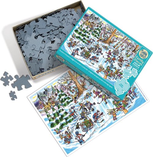 Skládá celá rodina! Jedinečnost rodinného puzzle od výrobce Cobble Hill spočívá v tom, že balení obsahuje dílky ve třech odlišných velikostech. Dílky mají malou, střední a velkou velikost a skládání je tak pohodlné pro děti, rodiče i prarodiče. V jedné části obrázku jsou velké dílky, které jsou díky svým rozměrům vhodné pro menší děti. Na druhé straně skládaného motivu jsou malé dílky, vhodné pro dospělé a větší děti, které jsou již zvyklé skládat puzzle. Prostřední část puzzle obsahuje dílky střední velikosti, na těchto dílcích jde zřetelně vidět skládaný motiv a sestavování obrázku je tak vhodné pro starší děti, babičku i dědečka. Velikosti dílků: velké cca 6 cm střední cca 3,5 cm malé cca 2 cm Raznice puzzle COBBLE HILL nekopíruje standardní mřížku, rohy a hrany dílků nejsou vždy v jedné ose a dílky mají neobvyklý tvar. Obtížnost puzzle je tak vyšší než u klasické mřížkové raznice, kterou používají přední výrobci v Evropě. Rozměr složeného puzzle cca 67,6 x 48,9 cm