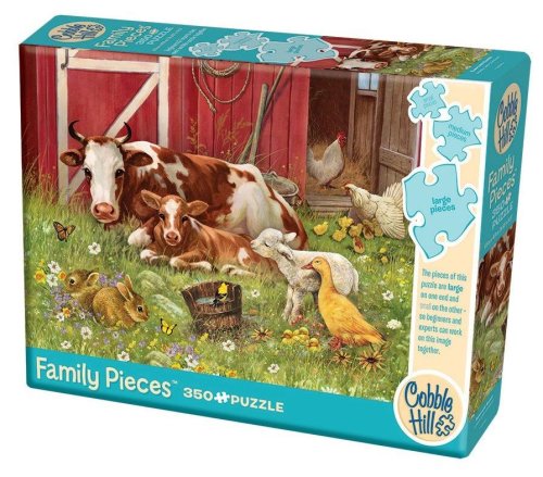 Skládá celá rodina! Jedinečnost rodinného puzzle od výrobce Cobble Hill spočívá v tom, že balení obsahuje dílky ve třech odlišných velikostech.