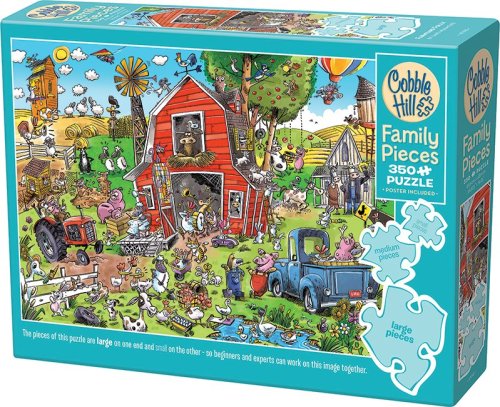 Skládá celá rodina! Jedinečnost rodinného puzzle od výrobce Cobble Hill spočívá v tom, že balení obsahuje dílky ve třech odlišných velikostech. Dílky mají malou, střední a velkou velikost a skládání je tak pohodlné pro děti, rodiče i prarodiče. V jedné části obrázku jsou velké dílky, které jsou díky svým rozměrům vhodné pro menší děti. Na druhé straně skládaného motivu jsou malé dílky, vhodné pro dospělé a větší děti, které jsou již zvyklé skládat puzzle. Prostřední část puzzle obsahuje dílky střední velikosti, na těchto dílcích jde zřetelně vidět skládaný motiv a sestavování obrázku je tak vhodné pro starší děti, babičku i dědečka. Velikosti dílků: velké cca 6 cm střední cca 3,5 cm malé cca 2 cm Raznice puzzle COBBLE HILL nekopíruje standardní mřížku, rohy a hrany dílků nejsou vždy v jedné ose a dílky mají neobvyklý tvar. Obtížnost puzzle je tak vyšší než u klasické mřížkové raznice, kterou používají přední výrobci v Evropě. Rozměr složeného puzzle cca 67,6 x 48,9 cm