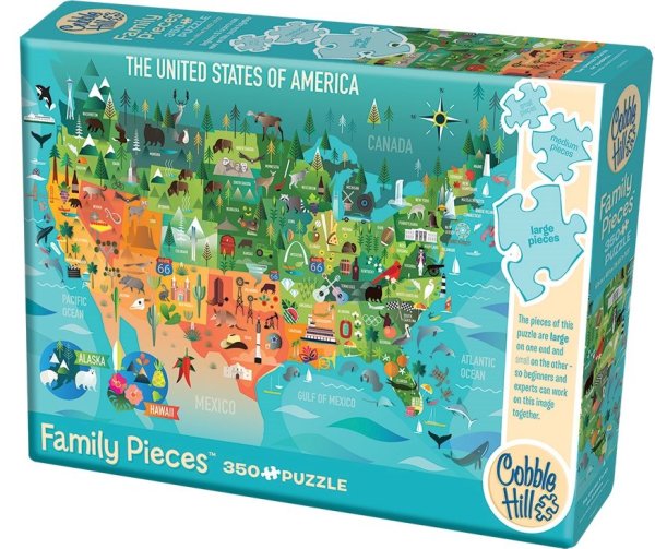 Skládá celá rodina! Jedinečnost rodinného puzzle od výrobce Cobble Hill spočívá v tom, že balení obsahuje dílky ve třech odlišných velikostech.