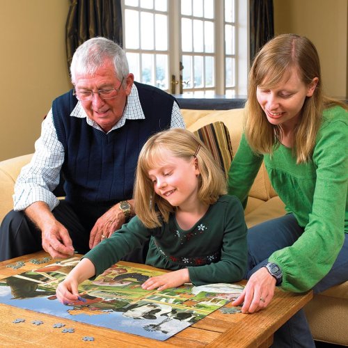 Skládá celá rodina! Jedinečnost rodinného puzzle od výrobce Cobble Hill spočívá v tom, že balení obsahuje dílky ve třech odlišných velikostech.