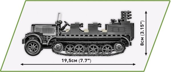 Sd.Kfz.7 byl německý dělostřelecký tahač vyráběný v letech 1934 - 1945. Celkem bylo vyrobeno něco málo přes 12 000 kusů. Na univerzálním podvozku tohoto vozidla bylo postaveno mnoho typů vozidel pro jiné účely (obrněná kabinová verze, velitelská vozidla, pozorovací vozidla, samohybná protiletadlová děla). V základní verzi tahač uvezl až 12 osob. Sada obsahuje dvě figurky: vojáka Luftwaffe a vojáka pěchoty Wehrmachtu. Sada obsahuje 439 kostek stavebnice a 2 figurky vojáků.