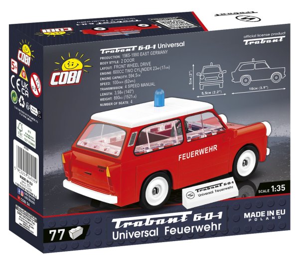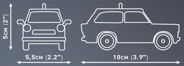 Postavte si model Trabant 601 značka osobních automobilů vyráběných v NDR v závodě VEB Sachsenring Automobilwerke ve Zwickau. Model 601 debutoval na trhu v roce 1964 a vyráběl se až do roku 1990. Vozy Trabant mají několik technicky zajímavých řešení. Patří mezi ně: tělo vyrobené z plastového materiálu zvaného Duroplast. Měl teplotu tání podobnou hliníku a zvyšoval odolnost vozu proti korozi a drcení. Mezi další pozoruhodná řešení patří malý dvoutaktní motor, velká okna a poměrně prostorný interiér. Vůz dosahoval závratné rychlosti, lehce přesahující 100 km/h. V červeném provedení vůz sloužil jako podpora hasičů a byl vybaven modrou výstražnou kontrolkou. Trabant si zasloužil označení kultovní auto z Německé demokratické republiky. Dodnes zůstává mezi motoristickými nadšenci rozpoznatelnou a mimořádně oblíbenou klasikou. Stalo se také trvalou součástí populární kultury. Balení obsahuje 77 kostek.