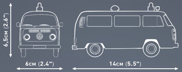 Postavte si model klasickou verzi modelu Volkswagen T2, který se stal symbolem spolehlivosti a použitelnosti, a v této edibilní verzi – slouží jako sanitka. Vyráběn byl v šedesátých a sedmdesátých letech široce používán různými službami. Balení obsahuje 169 kostek.