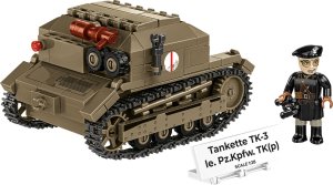 Postavte si model TK-3 byl jedním z prvních obrněných vozidel, které bylo dostatečně lehké, aby se pohybovalo po minových polích a obtížném terénu. Díky maximální rychlosti 40 km/h byl manévrován a vhodný pro rychlé manévry. Vybaven 2,5 milimetrovým ocelovým povlakem poskytl základní ochranu proti ručním ramenům, i když nebyl schopen čelit těžším kanónům. Balení obsahuje 323 kostek a 1 figurka.