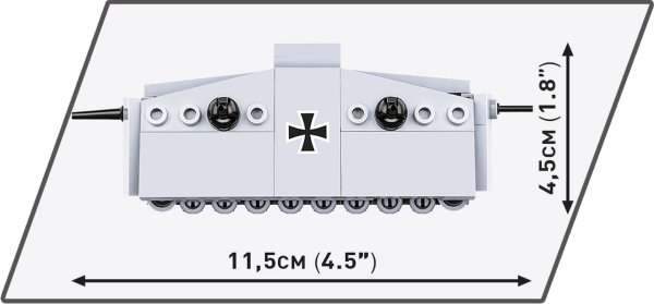 Postavte si model A7V, první německý tank z 1. světové války. Celkem jich bylo vyrobeno asi 20 kusů a objevily se na bojištích na konci 1. světové války. Toto pomalu se pohybující obrněné vozidlo, průkopník ve své kategorii, se potýkalo s mnoha technickými problémy. To mu však nezabránilo vstoupit do dějin! Jeho posádku tvořilo přibližně 18 vojáků. Výzbroj zahrnovala 57 mm kanón Nordfeld a 6 MG wz. 08. Balení obsahuje 119 kostek stavebnice a model je v měřítku 1:72.