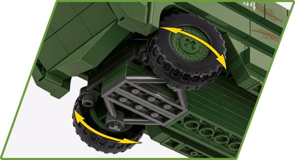 Dukw zvaný „kachna“ je vojenské obojživelné vozidlo používané především během 2. světové války. Sloužilo k vylodění na pobřeží a přepravě vojsk a zásob jak po vodě, tak na souši. Po válce byla řada těchto vozidel civilně využívána pro turistiku a rekreaci. Jeho charakteristický tvar a multifunkčnost udělaly z DUKW ikonu mezi historickými vojenskými vozidly. Náš model byl vyvinut v měřítku 1:35 a má otočná kola. Sada obsahuje figurku amerického vojáka, spoustu doplňků a ostnaté dráty.
