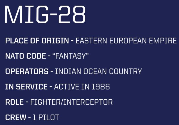 Postavte si model MIG-28. Ve filmu Top Gun z roku 1986 byl MIG-28 zobrazen jako antagonistické letadlo, které čelilo stíhačkám F-14 Tomcat, pilotované hlavními postavami. Navzdory tomu, že nemá žádný ekvivalent v reálném světě, MIG-28 si díky filmu získal popularitu a stal se ikonickým prvkem pop kultury. Filmová fikce však obsahuje zrnko pravdy! Známá silueta záhadného MiGu-28 není pro letecké odborníky žádným tajemstvím. Padouchem filmu je slavný stíhací letoun Northrop F-5 Freedom Fighter, upravený pro film!Charakteristická černá barva a emblémy s červenou hvězdou znemožňují záměnu s jiným strojem! Letoun má pohyblivá křidélka, výzbroj a odnímatelný podvozek. Kabina pilota se otevře a dovnitř můžete umístit zjednodušenou figurku s helmou s charakteristickou červenou hvězdou uzavřenou ve žlutém kruhu! Sada obsahuje stojánek na vystavení modelu se jmenovkou a s logem Top Gun! Balení obsahuje 332 kostek stavebnice.