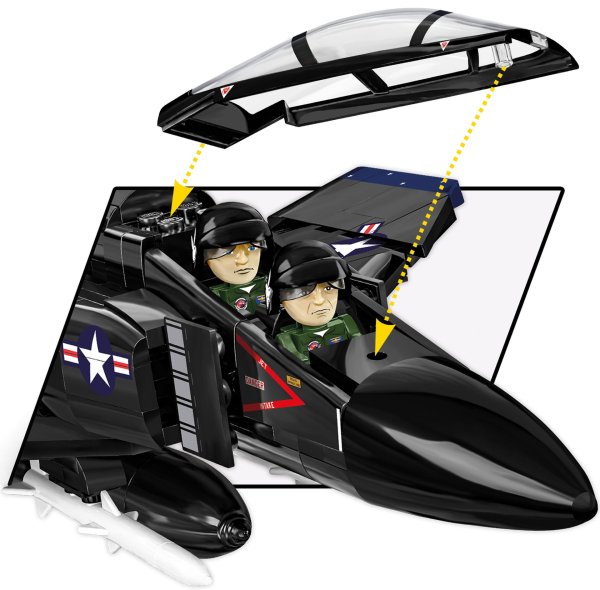 Postavte si model F-4S Phantom II "Black Bunny" unikátní nadzvuková víceúčelová stíhačka, která se zapsala do historie letectví! Nejpozoruhodnější a nejslavnější použití obrázku zajíčka pochází z Navy's Air Test and Evaluation Squadron Four (VX-4) na NAS Point Mugu, CA. Tato squadrona je zodpovědná za provozní testování pokročilých leteckých systémů. V této roli králičí hlava zdobila ocasy některých z nejlegendárnějších stíhaček amerického námořnictva, včetně F-4 Phantom II. Balení obsahuje 608 kostek.