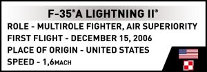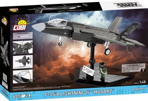 Postavte si model F-35A "Husarz" od společnosti COBI – moderní stíhačku polského letectva v měřítku 1:48 F-35A Lightning II "Husarz" je unikátní stavebnice od společnosti COBI, která vám umožní postavit model stíhačky páté generace – jednoho z opravdových es v nebi, které se brzy připojí k polskému letectvu. Moderní technologie a historie v jednom modelu F-35A je americký jednomístný víceúčelový stíhač nejnovější generace, vyvinutý v rámci programu Joint Strike Fighter. Navržený konsorciem společností Lockheed Martin, Northrop Grumman a BAE Systems, vyniká svými inovativními technologickými řešeními a schopností operovat ve všech bojových podmínkách. V roce 2024 polské ministerstvo národní obrany oficiálně pojmenovalo náš F-35A „Husarz“, což je odkaz na hrdou rytířskou tradici. Do roku 2030 bude do Polska dodáno celkem 32 letounů, které nahradí stárnoucí MiGy-29 a Su-22. F-35 „Husarz“ se stane klíčovým prvkem obrany proti hrozbě, kterou představují ruské Su-35 a Su-57. Co odlišuje F-35A „Husarz“? Tento futuristický letoun nabízí nejen technologii stealth – neviditelnost pro radar – ale také působivý výkon díky svému výkonnému motoru Pratt & Whitney F135-PW-100 s přídavným spalováním. F-35 bez námahy dosahuje nadzvukové rychlosti a přitom je obtížné jej odhalit.Jeho bojové schopnosti zahrnují nejen vzdušný boj, ale také bombardování, průzkum a elektronické rušení – to vše v rámci jedné mise. Jedná se o skutečný víceúčelový stíhač budoucnosti. Objevte klíčové vlastnosti stavebnice F-35A "Husarz" od COBI: